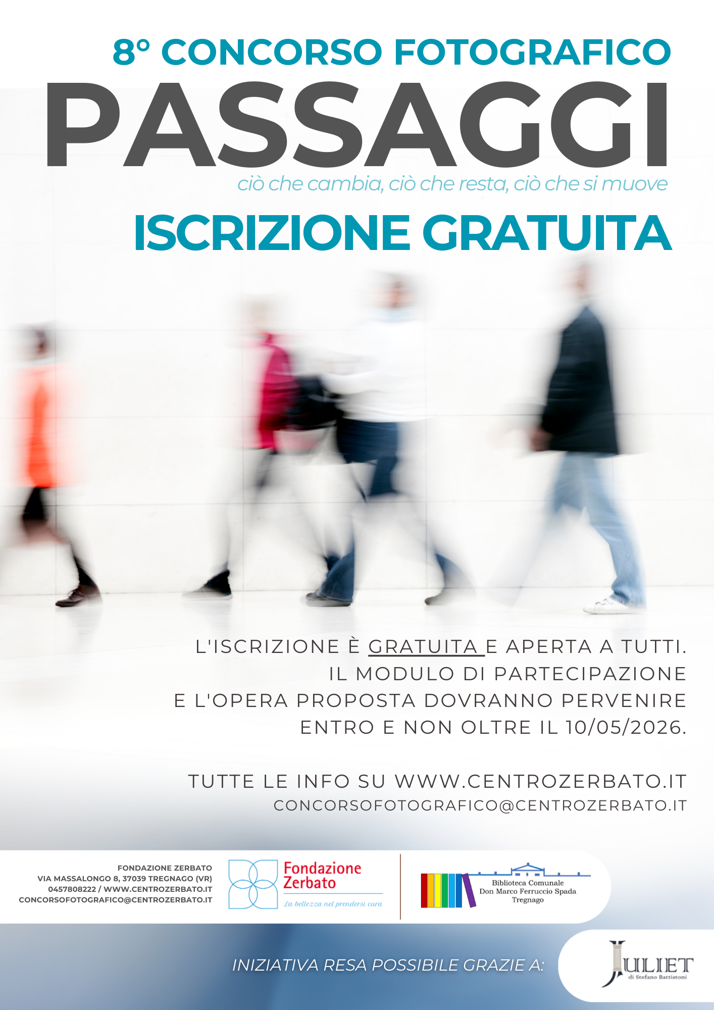 Dopo il successo delle scorse edizioni, torna il Concorso Fotografico della Fondazione Zerbato, giunto alla sua 8ª edizione: PASSAGGI.